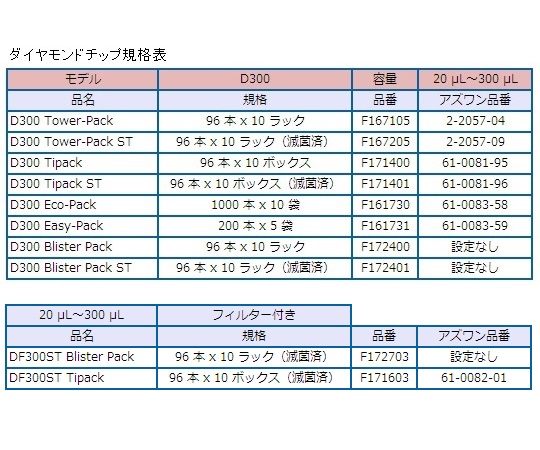 ●軽く、マニュアルピペットに近い持ち心地と操作性があります。●連続分注モードでもISO 8655に準拠した電動ピペットです。●1度の充電で約600回の分注操作が可能です。●充電中にコードを付けたままでも使用できます。●容量範囲:ピペットモード/20~300μL、連続分注モード/10~300μL●目盛単位:0.1μL●最大許容誤差(μL):±0.8~1.05●最大許容誤差(再現性)(μL):≦0.16~0.30●適合チップ:D200・D300・DF200・DF300●充電時間1時間で約80%、3時間で完全充電●操作モード(PIPET/REPIPETITIVE/MIX/REVERSW/CUSTOMの5種類)、スピードコントロール(吸引/吐出・6段階)●電源:AC100V 50/60Hz(ACアダプター付属)●付属品:ACアダプター・USBケーブル、バッテリータグ/イジェクタータグ×各4枚、潤滑剤