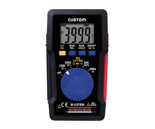 ●データホールド・リラティブ機能付きです。●本体背面に磁石を内蔵しているので、金属面に取り付け可能です。●テストリードは金メッキテストリードを採用し、本体周囲に巻き付けて収納可能です。●サイズ(mm):70×12.5×127●重量(g):101●測定機能:電圧(直流・交流)、抵抗、周波数、静電容量●機能:導通チェック(ブザー・LED)、ダイオードチェック●測定範囲:電圧(直流・交流)/0~600V(4レンジ)、抵抗/0~40MΩ、周波数/0~100kHz、静電容量/0~100μFF●適合規格:IEC61010-1 準拠 CATII600V、CATIII300V●電源:CR2032(3V)リチウム電池×1個(テスト用付属)