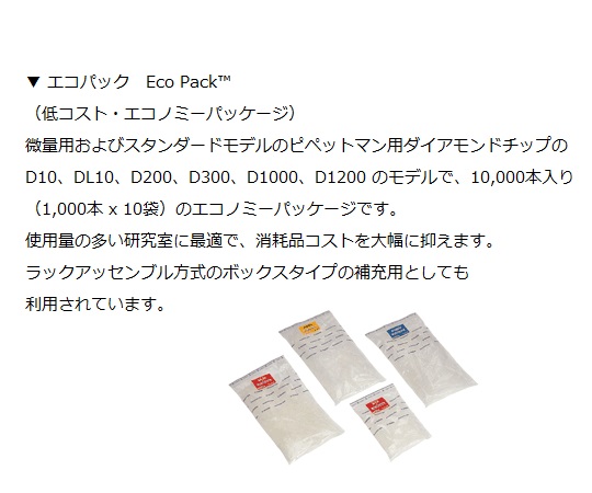 ダイアモンドチップ D200VEcoPack 未滅菌 2~200uL 1000本×10袋入 F161930