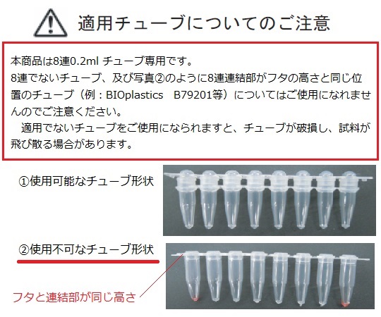 ●8連0.2mLチューブ(×4本)を遠心できます。●※連結部がフタの高さと同じ位置のチューブには使用できません。