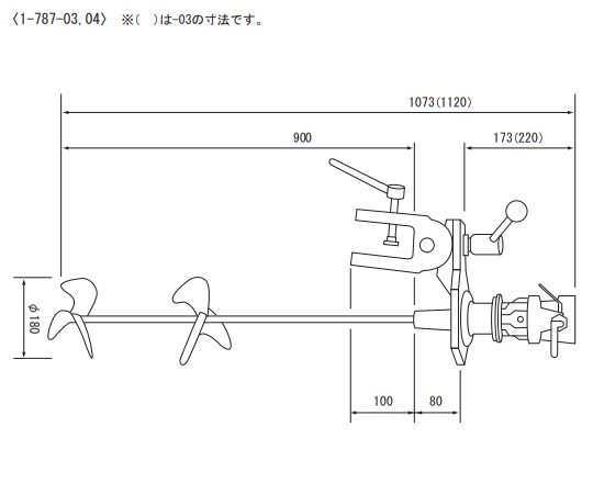 ●回転数:300~2000rpm(無段階)●全長:1073mm●最大トルク:8.13N・m●シャフト:Φ15×900mm●プロペラ径:φ160mm●材質:シャフト/ステンレス(SUS304)、プロペラ/アルミニウム●サイレンサー・ボールバルブ付き●固定金具付き●付属プロペラ数:2枚●空気圧:約0.59MPa●出力:0.42kW●最大空費:0.5m3/min●重量:7.0kg●推奨ホース径:φ6.5mm●ホース接手:PT1/4