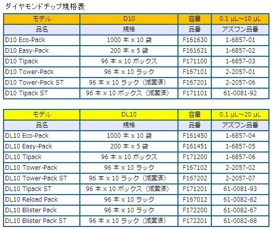 ●本体・ストロークともに超軽量です。●フルオートクレーバブルです。●軽量で持ちやすく、左右どちらの利き手にも対応できます。●所有者識別・アプリケーション区分等に便利なネームタグ付きです。●適合チップ:D10・DL10・DF10・DFL10●容量ロック機能付き●チップイジェクター(プラスチック製)付き●容量範囲:0.5~10μL●最大許容誤差:± 0.040~0.1μL●最大許容誤差(再現性):≦0.016~0.04μL●メーカーモデル:P10L