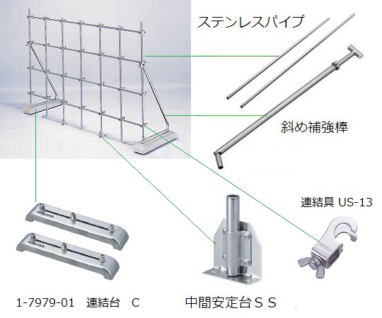 ●設置場所に合わせて組み立てができます。 ●必要に応じてアタッチメントを追加することが可能です。●φ13mm用●材質:パイプキャップ/PE(ポリエチレン)、中間安定台SS/ステンレス(SUS304)鋼板、連結台C/ステンレス鋳物●型番:C-S1200●サイズ(mm):1200×1000●連結台:2個●斜補強棒:2本●中間安定台(SS):1個●組立棒:C1000(100cm)×5本・C1200(120cm)×4本●連結具(US-13):22個●※16mm仕様もございます。お問い合わせください。