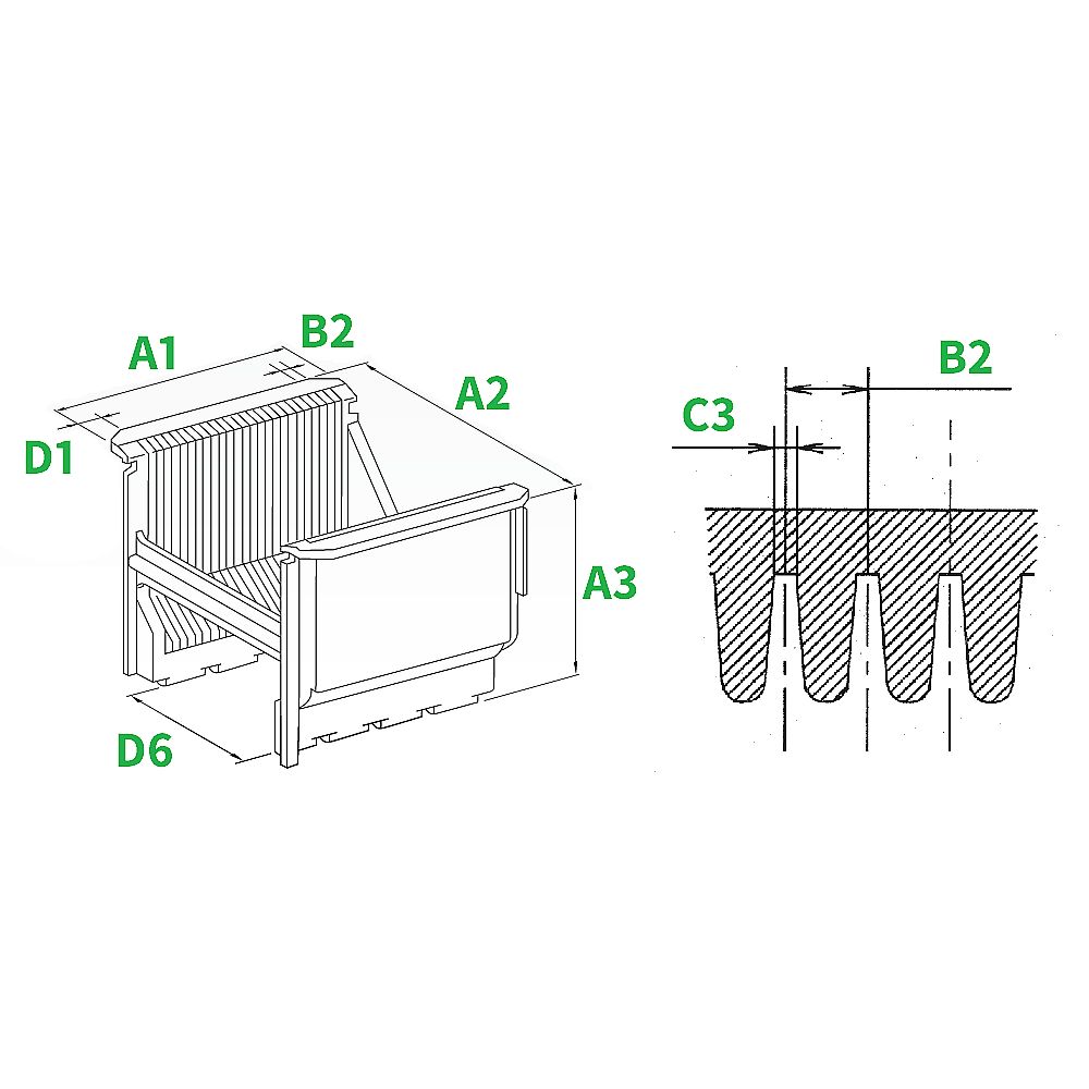 ●帯電防止、搬送、保管用キャリアです。●型番:KM-627NE-SH●ウェハー径(mm):150(6″)●サイズ(mm):A1/143.38、A2/177.8、A3/163.6、D1/14.65、B2/4.76、D6/88.9、D6g/100.9●収納数:25枚●材質:セミプラスト(R)NEO(PBT+Carbon)