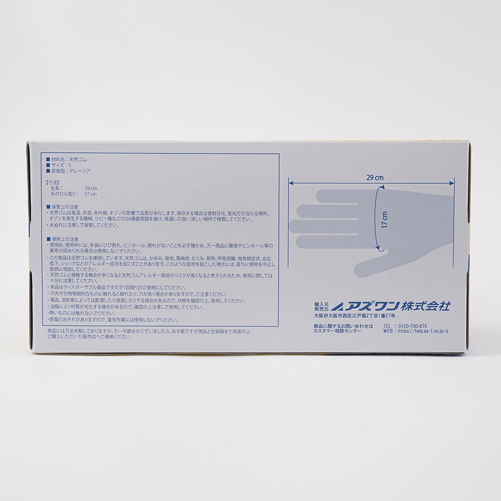 ●指・手のひら全面に滑り止めのエンボス加工を施しています。●細かい作業や長時間の作業に適しています。●サイズ:S (ロングタイプ)●入数:1ケース(100枚/箱×10箱入)●材質:ラテックス●全長:約290mm●手のひら幅:約85mm●中指長:約75mm●厚み:指先/0.14mm以上、手のひら/0.12mm以上、カフ/0.1mm以上●左右兼用●エンボス加工:全面●パウダーフリー●●*本製品は【1-8448-33(クアラテック手袋フルエンボス(パウダーフリー)S100枚入)×10個】のケース販売用の品番となります。