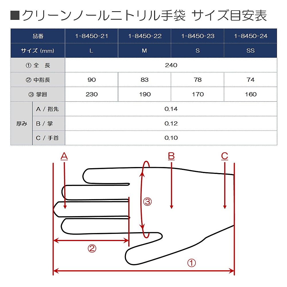 ●ラテックス製に比べ、耐突き刺し強度に優れています。●耐油性・耐薬品性に優れています。●手にぴったりフィットし、圧迫感が少ないです。●フタル酸、ノニルフェノールが含まれていません。●サイズ:L●入数:1箱(100枚入)●材質:ニトリルゴム●色:ブルー●全長:約240mm●中指長:約90mm●掌囲:約230mm●厚み:指先/約0.14mm, 掌/約0.12mm, 手首/約0.10mm●左右兼用●エンボス加工:全面●パウダーフリー/クロリネーション加工(塩素処理)●表面抵抗値(実測値):10^12Ω未満