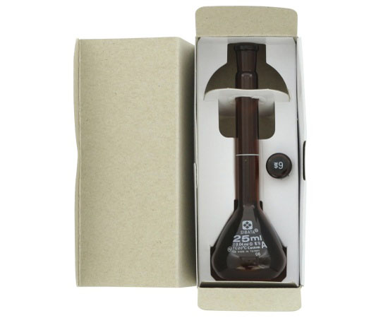●一定の体積を測るために用いられます。全量フラスコとも呼ばれます。●底の平らなフラスコに細長い首が伸びた形状で、首の部分に通常は1本の回線があります。●目盛のある首部分の径が細いため、同容量のメスシリンダーより目盛の精度が高いです。●一定の試薬濃度を正確に調整する時に使用されます。●目盛は受入体積(入っている体積)を表し、受用(入用)を意味するTCが表示しています。(TC:To Contain の略)目盛は20℃の水を測定したときの体積を表します。●JIS規格(R3505)クラスAの「体積の許容誤差」に準拠しています。●遮光を目的として外側に茶染めを施しております。●容量(mL):25●JCSS校正証明書付●全高:122mm●体積許容誤差:±0.04mL●栓(TS):9●外径:φ38mm●色:茶●材質:硼珪酸ガラス-2●TSガラス平栓付き●※カスタムAは、JIS R3505(1994年)クラスAの「体積許容誤差」に準拠しています。●※高さは栓を除く●※「校正証明書付」商品は当社オリジナルのサービスです。●●★※安全対策として、飛散防止を目的としたガラスコーティング対応が可能です。詳しくは下記までお問い合わせください。●●★アズワン株式会社▼サービスプロモーショングループ●★E-mail:tokuchu@so.as-1.co.jp●コード番号: