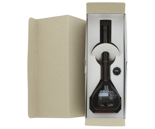 ●一定の体積を測るために用いられます。全量フラスコとも呼ばれます。●底の平らなフラスコに細長い首が伸びた形状で、首の部分に通常は1本の回線があります。●目盛のある首部分の径が細いため、同容量のメスシリンダーより目盛の精度が高いです。●一定の試薬濃度を正確に調整する時に使用されます。●目盛は受入体積(入っている体積)を表し、受用(入用)を意味するTCが表示しています。(TC:To Contain の略)目盛は20℃の水を測定したときの体積を表します。●JIS規格(R3505)クラスAの「体積の許容誤差」に準拠しています。●遮光を目的として外側に茶染めを施しております。●容量(mL):200●JCSS校正証明書付●全高:220mm●体積許容誤差:±0.15mL●栓(TS):16●外径:φ75mm●色:茶●材質:硼珪酸ガラス-2●TSガラス平栓付き●※カスタムAは、JIS R3505(1994年)クラスAの「体積許容誤差」に準拠しています。●※高さは栓を除く●※「校正証明書付」商品は当社オリジナルのサービスです。●●★※安全対策として、飛散防止を目的としたガラスコーティング対応が可能です。詳しくは下記までお問い合わせください。●●★アズワン株式会社▼サービスプロモーショングループ●★E-mail:tokuchu@so.as-1.co.jp●コード番号: