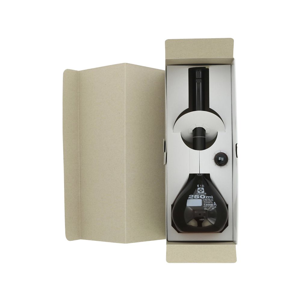 ●一定の体積を測るために用いられます。全量フラスコとも呼ばれます。●底の平らなフラスコに細長い首が伸びた形状で、首の部分に通常は1本の回線があります。●目盛のある首部分の径が細いため、同容量のメスシリンダーより目盛の精度が高いです。●一定の試薬濃度を正確に調整する時に使用されます。●目盛は受入体積(入っている体積)を表し、受用(入用)を意味するTCが表示しています。(TC:To Contain の略)目盛は20℃の水を測定したときの体積を表します。●JIS規格(R3505)クラスAの「体積の許容誤差」に準拠しています。●遮光を目的として外側に茶染めを施しております。●材質:硼珪酸ガラス-2●TSガラス平栓付き●全高:235mm●容量:250mL●色:茶●体積許容誤差:±0.15mL●栓(TS):16●外径:φ81mm●※JIS R3505(1994年)クラスAの「体積許容誤差」で製作しています。※高さは栓を除く。●●★※安全対策として、飛散防止を目的としたガラスコーティング対応が可能です。詳しくは下記までお問い合わせください。●●★アズワン株式会社▼サービスプロモーショングループ●★E-mail:tokuchu@so.as-1.co.jp●コード番号:026100-250