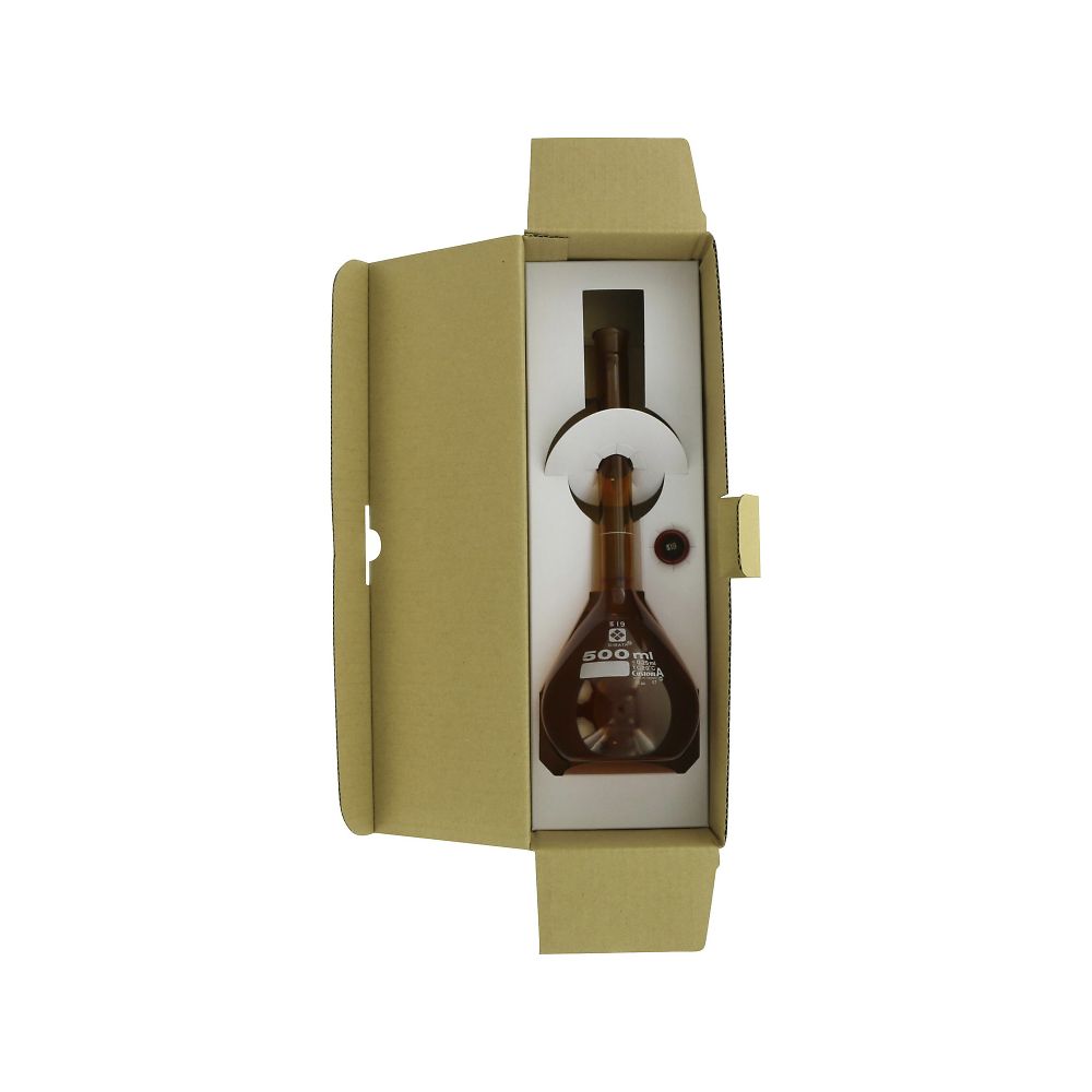 ●一定の体積を測るために用いられます。全量フラスコとも呼ばれます。●底の平らなフラスコに細長い首が伸びた形状で、首の部分に通常は1本の回線があります。●目盛のある首部分の径が細いため、同容量のメスシリンダーより目盛の精度が高いです。●一定の試薬濃度を正確に調整する時に使用されます。●目盛は受入体積(入っている体積)を表し、受用(入用)を意味するTCが表示しています。(TC:To Contain の略)目盛は20℃の水を測定したときの体積を表します。●JIS規格(R3505)クラスAの「体積の許容誤差」に準拠しています。●遮光を目的として外側に茶染めを施しております。●材質:硼珪酸ガラス-1●TSガラス平栓付き●全高:280mm●容量:500mL●色:茶●体積許容誤差:±0.25mL●栓(TS):19●外径:φ100mm●※JIS R3505(1994年)クラスAの「体積許容誤差」で製作しています。※高さは栓を除く。●●★※安全対策として、飛散防止を目的としたガラスコーティング対応が可能です。詳しくは下記までお問い合わせください。●●★アズワン株式会社▼サービスプロモーショングループ●★E-mail:tokuchu@so.as-1.co.jp●コード番号:026100-500