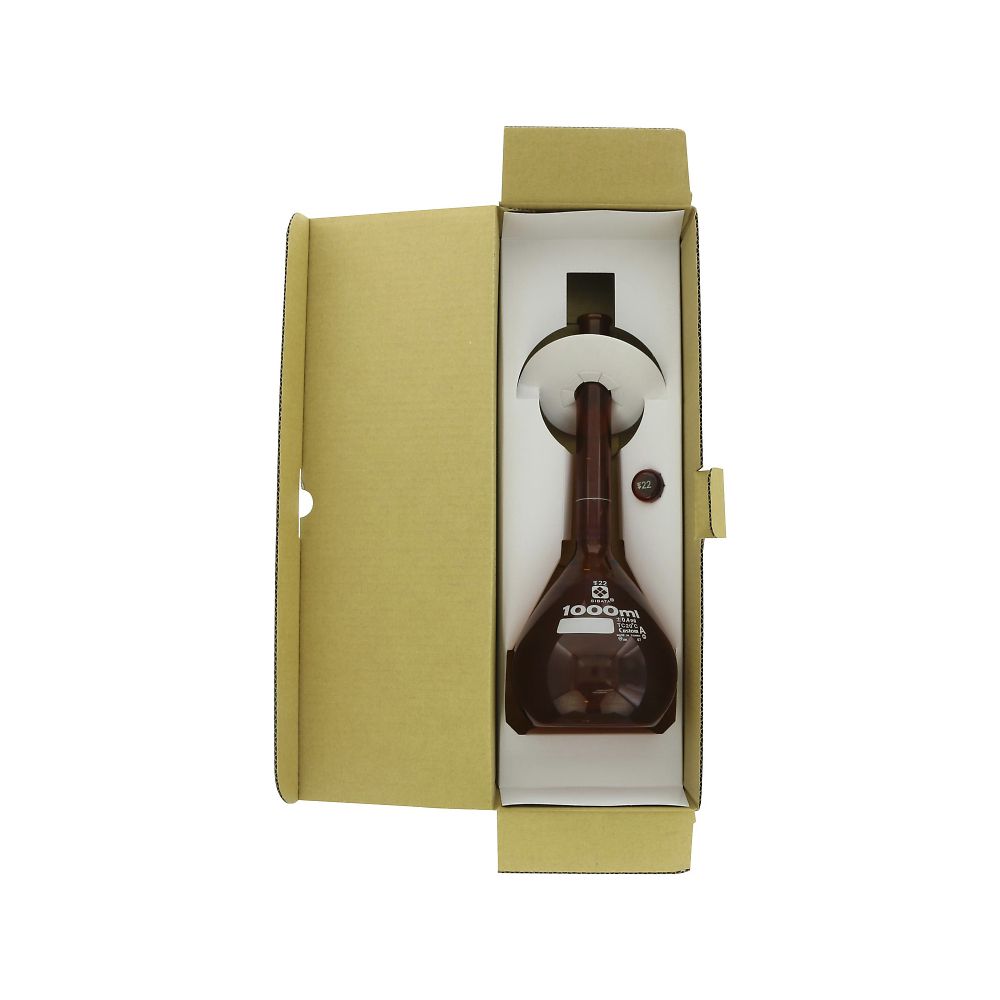 ●一定の体積を測るために用いられます。全量フラスコとも呼ばれます。●底の平らなフラスコに細長い首が伸びた形状で、首の部分に通常は1本の回線があります。●目盛のある首部分の径が細いため、同容量のメスシリンダーより目盛の精度が高いです。●一定の試薬濃度を正確に調整する時に使用されます。●目盛は受入体積(入っている体積)を表し、受用(入用)を意味するTCが表示しています。(TC:To Contain の略)目盛は20℃の水を測定したときの体積を表します。●JIS規格(R3505)クラスAの「体積の許容誤差」に準拠しています。●遮光を目的として外側に茶染めを施しております。●材質:硼珪酸ガラス-1●TSガラス平栓付き●全高:325mm●容量:1000mL●色:茶●体積許容誤差:±0.4mL●栓(TS):22●外径:φ127mm●※JIS R3505(1994年)クラスAの「体積許容誤差」で製作しています。※高さは栓を除く。●●★※安全対策として、飛散防止を目的としたガラスコーティング対応が可能です。詳しくは下記までお問い合わせください。●●★アズワン株式会社▼サービスプロモーショングループ●★E-mail:tokuchu@so.as-1.co.jp●コード番号:026100-1000
