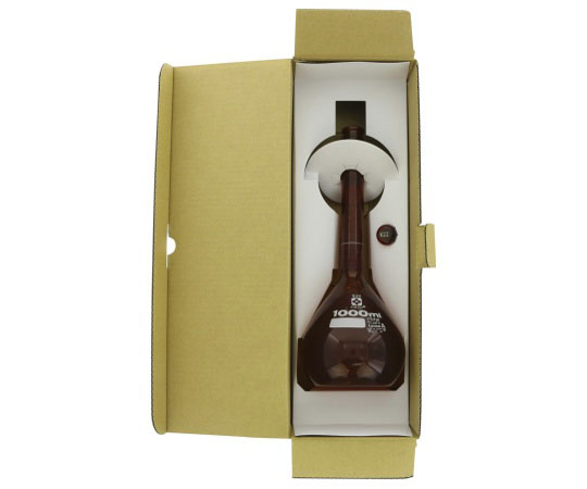 ●一定の体積を測るために用いられます。全量フラスコとも呼ばれます。●底の平らなフラスコに細長い首が伸びた形状で、首の部分に通常は1本の回線があります。●目盛のある首部分の径が細いため、同容量のメスシリンダーより目盛の精度が高いです。●一定の試薬濃度を正確に調整する時に使用されます。●目盛は受入体積(入っている体積)を表し、受用(入用)を意味するTCが表示しています。(TC:To Contain の略)目盛は20℃の水を測定したときの体積を表します。●JIS規格(R3505)クラスAの「体積の許容誤差」に準拠しています。●遮光を目的として外側に茶染めを施しております。●容量(mL):1000●JCSS校正証明書付●全高:325mm●体積許容誤差:±0.4mL●栓(TS):22●外径:φ127mm●色:茶●材質:硼珪酸ガラス-1●TSガラス平栓付き●※カスタムAは、JIS R3505(1994年)クラスAの「体積許容誤差」に準拠しています。●※高さは栓を除く●※「校正証明書付」商品は当社オリジナルのサービスです。●●★※安全対策として、飛散防止を目的としたガラスコーティング対応が可能です。詳しくは下記までお問い合わせください。●●★アズワン株式会社▼サービスプロモーショングループ●★E-mail:tokuchu@so.as-1.co.jp●コード番号: