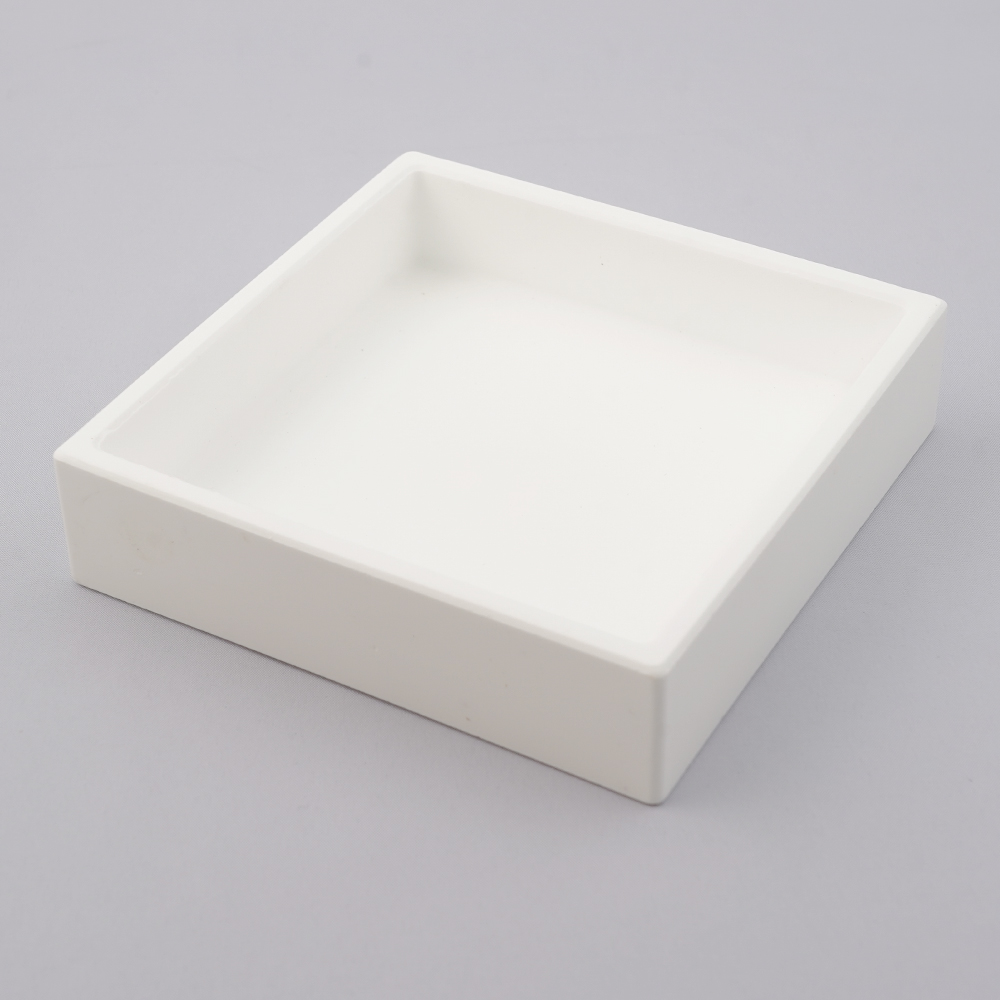 ●材質:Al2O3(純度>96.2%)●体積密度:3.6g/cm3●曲げ強さ:300MPa●ロックウェル硬度:80HRA●色:ホワイト●容量:130mL●サイズ:100×100×25mm●使用推奨温度:1400℃以下