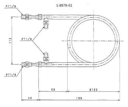 ●二重管の内管と外管に、それぞれ流された流体は、内外流体の温度差により、連続的に冷却・加熱され排出されます。●サイズ:総高/230mm、コイル径/112mm●伝熱面積:0.037m2●材質:ステンレス(SUS304)●取付部管径(内管・外管):PT1/8●コイル幅:71mm●コイル長:2.0m●巻数:5.5