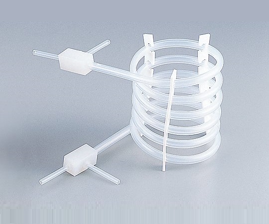 ●二重管の内管と外管に、それぞれ流された流体は、内外流体の温度差により、連続的に冷却・加熱され排出されます。●型番:NH-T1●サイズ:総高/230mm、コイル径/112mm●伝熱面積:0.037m2●材質:フッ化樹脂●取り付け部管径:内管/φ6mm(外径)・φ4mm(内径)、外管/φ10mm(外径)・φ8mm(内径)●熱交換部管径:内管/φ6mm(外径)・φ4mm (内径)、外管/φ10mm(外径)・φ8mm(内径)●コイル幅:230mm●コイル長:2.0m●巻数:5.5