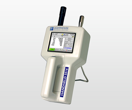 ●6粒径同時計測でき、画面には累積個数と粒径別個数が温湿度データと同時に表示されます。●ディスプレイは、88.9mmの見やすいカラータッチスクリーンです。●グリップ部分に測定開始停止ボタンが配置されており、片手で操作できます。●ハンドヘルド●測定レンジ(μm):0.5~10.0●標準測定粒径:0.5・1.0・3.0・5.0・10.0μm ●サンプル流量:0.1CFM(2.83LPM)●メモリ:3000回●外部接続:RS-232(RJ-45)パソコンまたはプリンター●アラーム:カウント・ローバッテリー・センサーエラー●電源:AC100~240V 50/60Hz●バッテリー:充電式リチウムイオンバッテリー(取外可能)●サイズ:127×222.3×63.5mm●重量:1kg●付属品:バッテリー、等速サンプリングプローブ(直結用)、パージフィルタ、温湿度プローブ、データ・トランスファーソフトウェア(LMSXChange)、アダプター電源コード