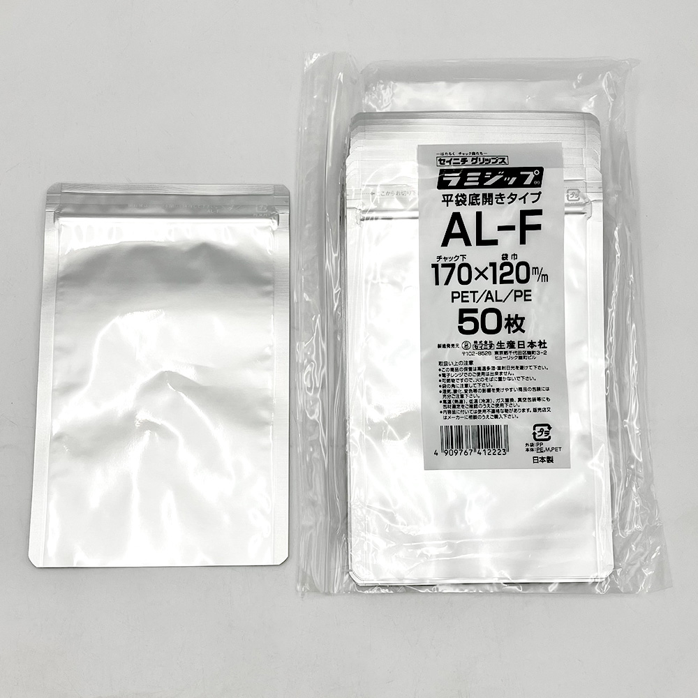 アルミラミジップ(底開きタイプ) 幅:120×チャック下:170mm 1袋(50枚×2袋入) AL-F