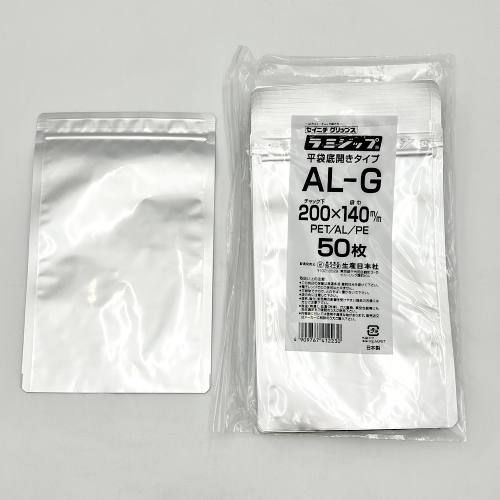 アルミラミジップ(底開きタイプ) 幅:140×チャック下:200mm 1袋(50枚×2袋入) AL-G