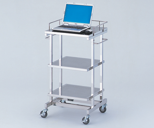 ●クリーンルーム環境でのパソコン操作に適したカートです。●天板の一部はフラット面で、マウス操作がスムーズに行えます。●型番:YMD171115-03●サイズ(mm)※:620(500)×460(450)×960(900)●重量(kg):15●本体材質:ステンレス(SUS304)●天板・棚板:パンチング処理●キャスター:φ75mm(前面2輪ストッパー付きエラストマー巻)●棚板荷重:天板30kg、2・3段目20kg、合計70kg(均等荷重)●※()押手・手摺部除く
