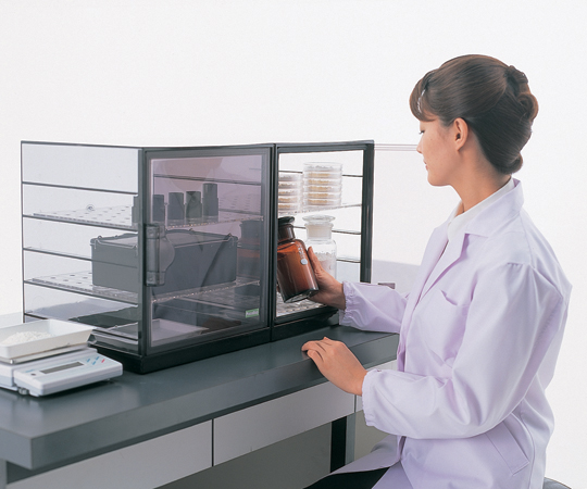 ●ワンタッチ開閉式の扉でスムーズな収納・取り出しが可能です。●フラット扉採用で横並べ保管も可能です。●持ち手無し●材質:AS(アクリロニトリルスチレン)樹脂●棚板寸法:306×332×10mm●棚間隔:65mm(最高5枚収納可能)●棚板耐荷重:約2kg/枚●総耐荷重:約5kg●重量:約4.2kg(棚板含む)●付属品:棚板×2枚・シリカゲル皿×1枚●外寸法:350×350×400mm●内寸法:340×344.5×387mm●※別売のジョイント枠H型(2H型)を使用すると上に積み重ねて使用する事が可能です。●※ゴム足については単独でご使用の場合に取り付けてください。別売のジョイント枠H型(2H型)を使用する場合は底面はフラットの方が安定します。