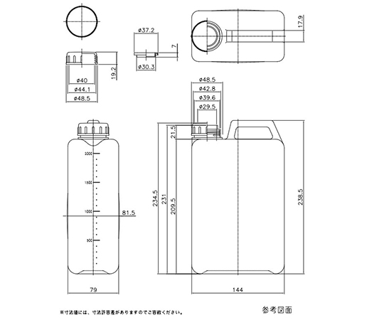 ●持ちやすい取っ手付きで、持ち運びに便利です。●材質:本体/高密度ポリエチレン(HDPE)、キャップ/ポリプロピレン(PP)、中栓/リニアポリエチレン(LLDPE)●使用温度範囲:0~70℃●容量:2L●目盛(mL):100●入数:1本●ケース入数量:1ケース(90本)●商品コード:1041-01