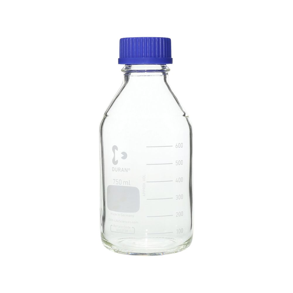 【純水洗浄】ねじ口瓶丸型(デュラン(R)) 青キャップ付 750mL 1本