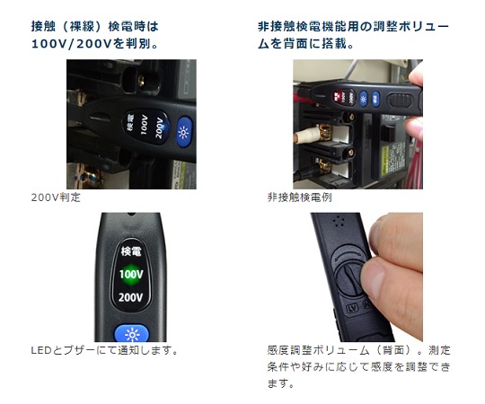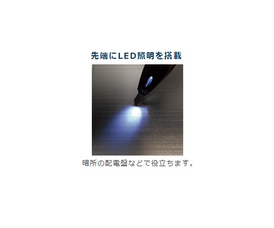 ●接触式AC・DCと非接触ACの検出が可能なオールインワンタイプです。●LEDとブザーで確実に検電できます。●暗所で便利なプローブ照明機能付きです。●非接触式AC検出電圧は3段階の感度調整機能付きです。●接触式DC検出電圧:5~1000V●接触式AC検出電圧:7~1000V●非接触式AC検出電圧:30~1000V●インジケータ:125V以下/100VのLED点灯、125V以上/200VのLED点灯、非接触AC検出:NCVのLED点灯●電源:LR44(1.5V)ボタン電池×2個(テスト用付属)●その他:プローブ照明、セルフテスト機能●サイズ(mm):17.5×17×132●重量(g):50●型番:V-17
