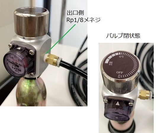 ●減圧弁●接続形状:出口側/Rp1/8メネジ、 カートリッジ接続側/5/8-18UNFメネジ●使用温度(減圧弁):0~40℃●サイズ:約35×32×80mm●台取付幅(固定用金具使用時):最大55mm●圧力設定範囲(MPa):0.05~0.35●圧力表示計(MPa):0~0.5●※減圧弁にはカートリッジボンベは付属していません。専用カートリッジボンベをご購入ください。