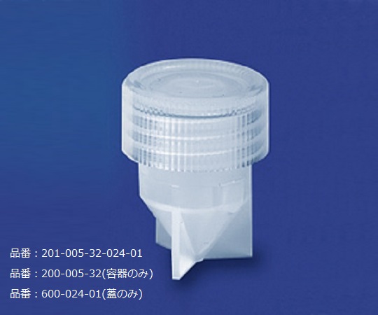 ●材質:PFA(フッ素樹脂)●使用温度範囲:-200~+260℃●オートクレーブ可●容量(mL):5●径×高さ(mm):φ27.4×36.1●底形状(内面/外面):円錐形/翼状脚付き●型番:201-005-32-024-01