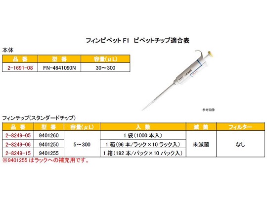 フィンピペットF1(シングルチャンネル) 30~300μL cv0.60% 4641090N