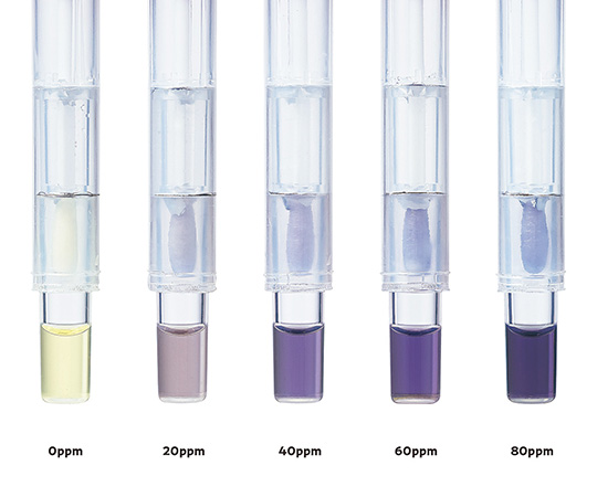 ●ヒスタミン量を測定する簡易キットです。●サンプル処理後は綿棒を検液につけるだけ、5分程度で反応します。●特別な測定機器は不要で色の発色度合いを目視確認します。●品名:ヒスタミンチェックスワブ●入数:1キット(20本/袋×2袋入)●検出範囲:20~80ppm(サンプル2倍希釈時は40~160ppm)●反応時間:5分●セット内容:試薬(20本入×2袋)、濃度確認用カラーチャート●保存方法:2~8℃(冷暗所)※凍結しないこと●使用前に室温(18~30℃)に戻してご使用ください。●前処理ではプラスチック製の容器を別途ご用意ください。●測定サンプルやサンプルの前処理方法によっては誤発色が起こるなど、正確にヒスタミン量を測定できないことがございます。正確にヒスタミンを検出するには「2-3137-01 60441 チェックカラーヒスタミン」をご使用ください。●※本品は日本国内向けの販売とさせて頂きます。