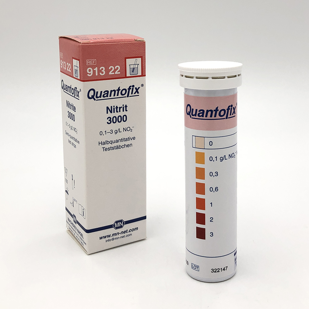 ●呈色試薬を含んだ試験紙とサンプル液中のイオンとの特異的反応を利用し半定量を行います。●測定は試験紙を検液に浸し、変色度を外箱のカラースケールと比較するだけです。●サンプルは微量でよく、イオン選択性も大変優れています。●プラスチックスティック(0.2mm厚)の端に貼り付けてある試験紙はカラースケールと同じサイズで色比較が大変明瞭にできます。●測定項目:NO2^-●品名:亜硝酸3000●測定レンジ:0-0.1-0.3-0.6-1.0-2.0-3.0g/L●変色:白~暗赤●入数:1箱(100枚入)●QUANTOFIX●※スケールオーバーする高濃度の時には希釈、また妨害イオンの可能性がある場合には除去処理が必要です。