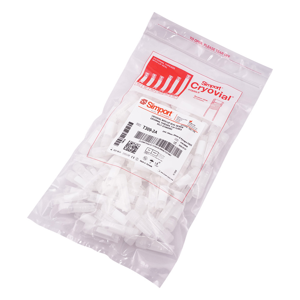 クライオバイアル リップシールタイプ 2mL 外ネジ・自立型 1箱(100個×10袋入) T309-2A