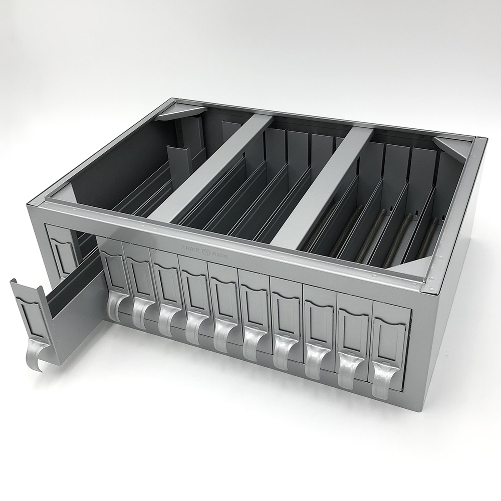 ●標本・スライド・包埋ブロックの分類・整理・検索が効率よく行えます。●目的スペースに合わせて、積み重ねて使用できます。●型番:SK-1-02●外寸法(mm):433×310×143●引出数:12●顕微鏡標本用(2条バネ式)●材質:スチールメラミン焼付塗装●引出内寸法(mm):幅/29、奥行/290、高さ/102●1引出標本保存数(枚):150