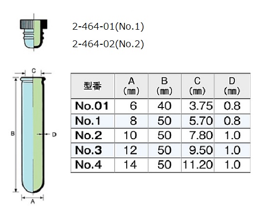 ●型番:No.1●材質:本体/硼硅酸ガラス、キャップ/PE(ポリエチレン)●全長:50mm●容量:1mL●色:褐色●胴径:φ8mm●入数:500個入●コード番号:0407-06