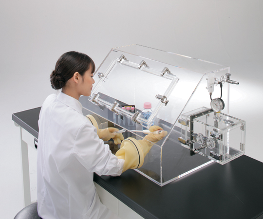 ●パスボックスは真空引き方式でガス置換できます。●本体は陽圧用の安全弁(100mmH2O=980Pa)付きです。●庫内の環境をモニタリングする際に必要な酸素モニターを標準装備しています。またモニタホルダーは角度調整可能です。●本体内部にコンセントが付いています。●エアタイト800Xモニター付きPC(コンセント付き)●材質:本体/透明PMMA(アクリル樹脂)、センサーベース/PMMA(アクリル)10mm厚、バルブ・真空取付部/ポリカーボネート、(酸素濃度計ホルダー)ベース板/PVC 5mm厚、トルクヒンジ(SUS)、ヒンジベース/PMMA(アクリル)10mm厚●パスボックス許容真空度:1Torr(約133Pa)●パスボックス内寸法:150×150×220mm●酸素濃度測定範囲:0~25.0%●重量:36kg●付属品:バルブ(外径φ8mm・φ14mm)×各2個・真空ゲージ×1個・グローブボックス用手袋(大)×1双●※特注及び追加工可能です。