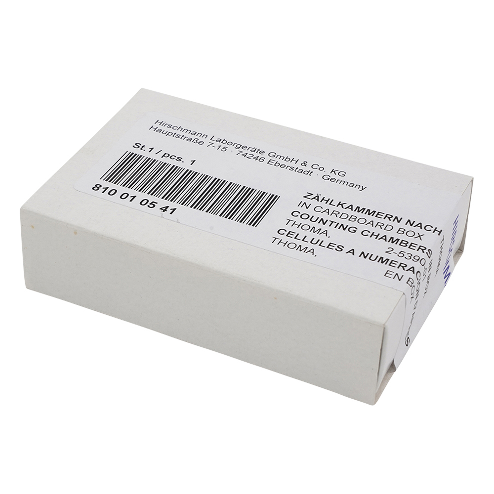 ●型番:8100105●タイプ:トーマ●スタンダード●目盛標線(mm):1×1●血球計算盤●目盛線の太さ:3~4μm●目盛線の深さ:0.100mm±2μm●板厚:約4.3mm●材質:ホワイトグラス●屈折率:Nd=1.523●分散値:Le=58.6●アルカリ溶出量:0.1mg(Na2O)●※ドイツ製のため、国内検査等は受けていません。●付属品:カバーグラス×2枚(26×20×0.4mm)