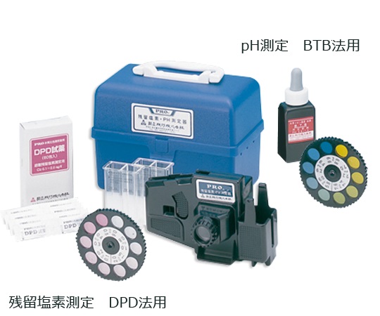 ●1台で残留塩素濃度および水素イオン濃度(pH)測定が行えます。●比色板はワンタッチで交換ができ、色あせしない特殊樹脂製です。●一眼プリズム方式ですので比色しやすく正確です。●携帯に便利なコンパクト設計のため、測定場所を選びません。●測定項目:残留塩素濃度0.1~2.0ppm、pH5.8~7.6●サイズ:130×82×80mm●重量:104g●比色板:残留塩素用1枚/水素イオン濃度用1枚●試薬:DPD試薬60包、BTB試薬30mL●セット内容:本体・検水管2本・携帯用ケース(167×100×125mm)