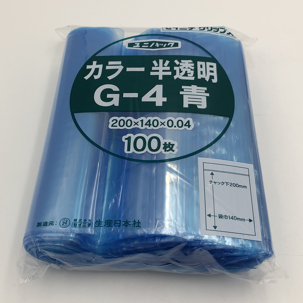 ユニパックカラー半透明 140×200mm(青) 1袋(100枚入) G-4