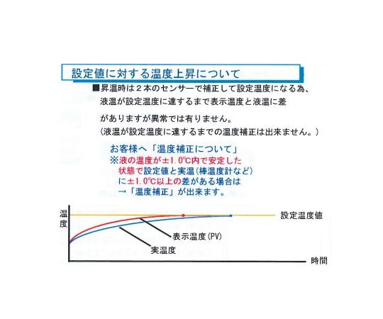 ●ビーカーをそのまま加熱・冷却できます。●ブロック温度と液体の温度をセンシングすることによって、正確な温度コントロールが可能です。●ペルチェ素子を用いた電子冷却方式により、静かでクリーンです。●加熱・冷却自在のきめ細かな温度調節が可能です。●型番:MC-1●サイズ:270×210×260mm(本体)●温度調節範囲:5~80℃●冷却加熱方式:ペルチェ素子●温度制御方式:PID制御●温度センサー:K熱電対●電源:AC100V、50/60Hz●材質:本体/ABS樹脂、透明カバー/PS(ポリスチレン)、バス部/アルミニウム(フッ素樹脂コーティング)、コントローラー/スチール塗装●本体重量:約8kg●コントローラーサイズ:70×260×190mm●消費電力:最大約100W●電源コード長:2m(2Pプラグ)●※冷却ユニットは付属していません。●点検・検査サービスが可能な商品です。 是非お問合せください。●※点検・検査サービスとは、出荷時もしくはお客様の現場で、制御関係(庫内実測温度等)や電動機関係の検査を実施し、検査書を発行するサービスです。
