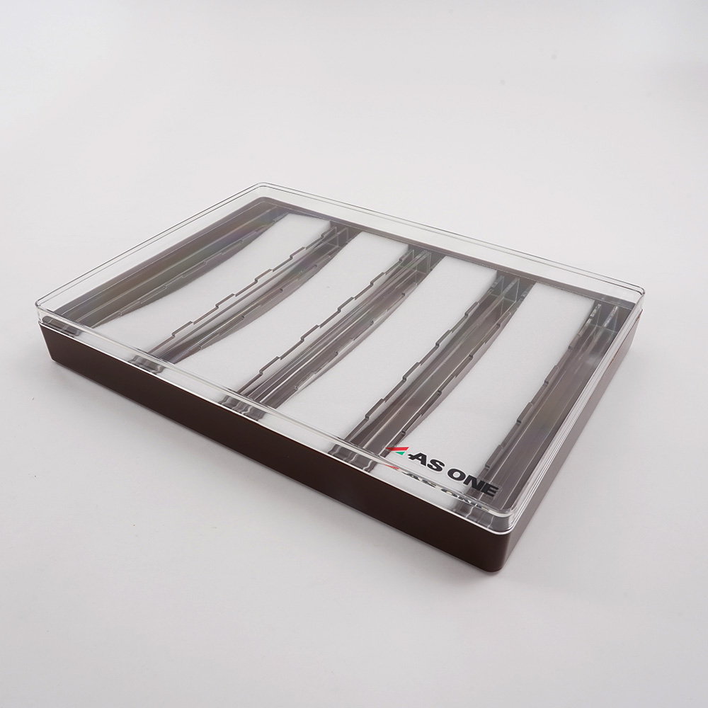 ●血液検査や免疫染色の際、標本が乾かないよう保管できます。●箱本体とスライドグラス仕切板が分離できますので清掃等が容易です。●スライドグラスが一枚ずつ取り出しやすい構造になっています。●フタをした状態で積み重ね可能です。●型番:MC-NM20●4列×5段(20枚)●外寸法(mm):363×263×50●モイストチャンバー●材質:本体・フタ/PS(ポリスチレン)、内部仕切板/PMMA(アクリル)●スライドグラス適用サイズ:最大26×76mm●スポンジ(10mm厚)付き