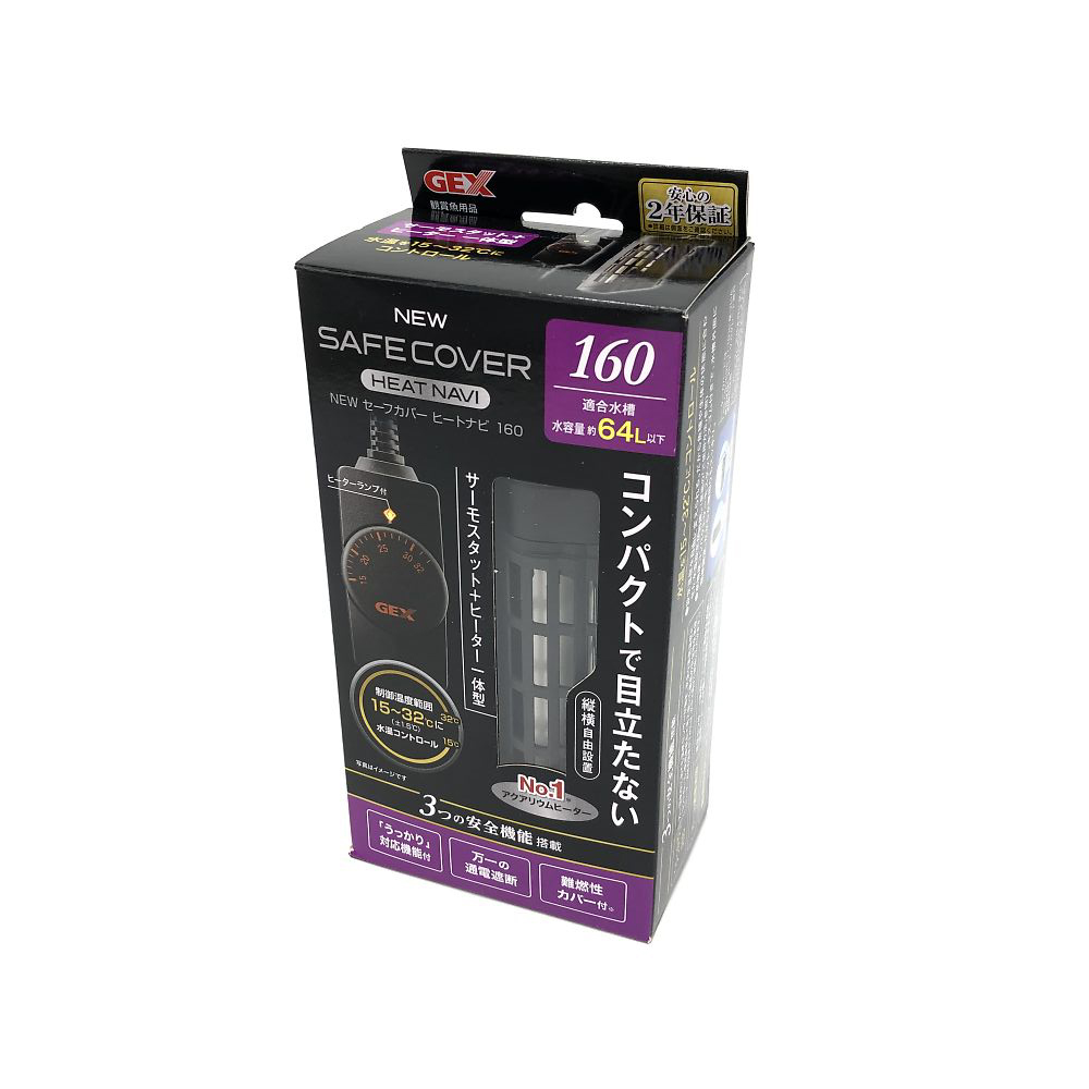 ●魚を熱から守る安全カバー付ヒーターとコンパクトサーモスタットの一体型温度可変式ヒーターです。●ヒーターは横向き設置に加え、縦向き設置も可能です。●ヒーターサイズ(mm):約53×42×144●適合水槽:水容量約64L以下●制御温度範囲:15~35℃(設定精度:±1.5℃)●通電遮断機能:温度センサー+温度ヒューズ●使用環境:淡水・海水●サーモスタット本体サイズ:36×77×33mm●ヒーターコード長:約0.6m●電源:AC100V 50/60Hz(コード長:約1.2m)●※熱帯魚用ヒーター安全対策協議会「SH規格」適合品