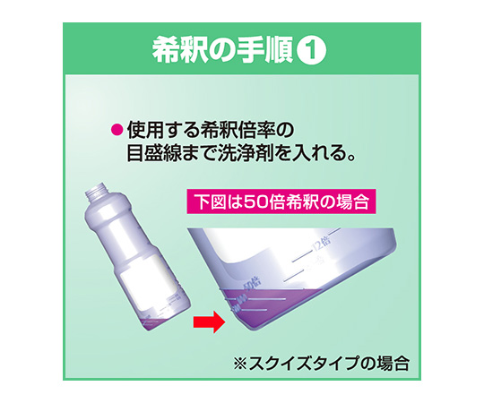 ●本品は空容器です。以下の製品を入れてご使用ください。●▼ご使用の洗剤例:パワーストリームコンク・ストリームエコ濃縮タイプ・モアコンパクト・ワンダフル・ファミリーフレッシュ・チェリーナ・ネオペレックスL-1000●業務用として使いやすい設計。●4倍から300倍まで、希釈に便利な目盛り線がついています。さらに、50mLごとの目盛り線もついています。●持ちやすく倒れにくい形状です。●容器をシリーズでお使いの場合、用途ごとにラベルの色が異なるので、洗浄剤と除菌剤の誤認・誤使用の防止に効果的です。●長期間の使用でもはがれにくいラベル、変形しにくい容器です。●内容量:800mL●空容器
