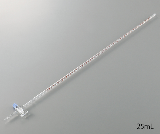 ●材質:本体/硼珪酸ガラス3.3●熱膨張係数:33×10^-7/℃(20~300℃)●クラス:AS(ISO385)●容量(mL):10●一目盛(mL):0.02●体積許容誤差(mL):±0.02●全長(mm):820●ガラスコック付●型番:10mL