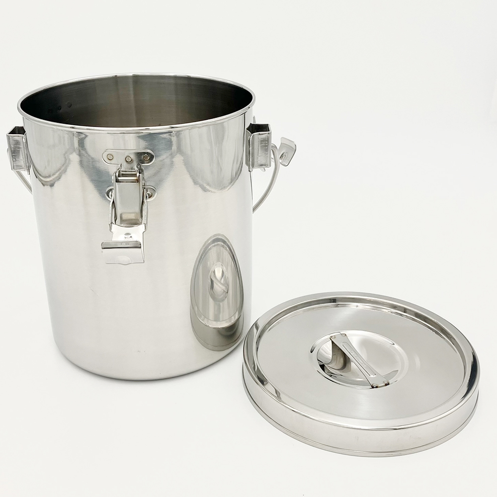●本体は一枚絞りで耐久性に優れています。●材質:ステンレス(SUS304)●パッキン:シリコン(標準付属、耐熱温度-50~200℃)、バイトン(R)(別売、耐熱温度-15~200℃)●内径×高さ×板厚(mm):φ180×210×0.6t●重量:約1200g●※耐圧構造ではありません。●型番:5L