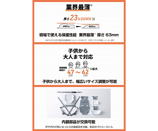 ●コンパクトに収納できるため、携帯・備蓄に便利です。●内装交換可能で出張現場へ携帯するへルメットとしても適しています。●色:グリーン●★入数:1個●材質:ABS樹脂●頭囲サイズ:470~620mm●厚生労働省保護帽検定合格品(飛来落下物用、墜落時保護用)●携帯用収納袋付き●重量(g):450●※企業名等の名入れも可能です。お問合せください。