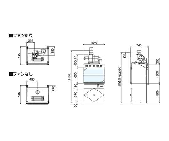 ●ステンレス製ですので、有機溶剤を使用する作業に適しています。●コンパクトサイズですので設置場所を取りません。●ファンなし●外寸法(mm):900×745/650×1850●本体材質:ステンレス(SUS304)●サッシ:4mm厚透明強化ガラス バランスウェイト式 開口制限鍵付き(高さ300mm)●照明:LED蛍光灯(15W×1灯相当)●サービスコンセント:AC100V 15Aダブル(防滴プレート付き)●電源:AC100V 50/60Hz●電源コード:2.5m 接地型2Pプラグ●PVC(塩化ビニル樹脂)ボリュームダンパー 相フランジ付き●排気口:200A●※特注及び追加工可能です。