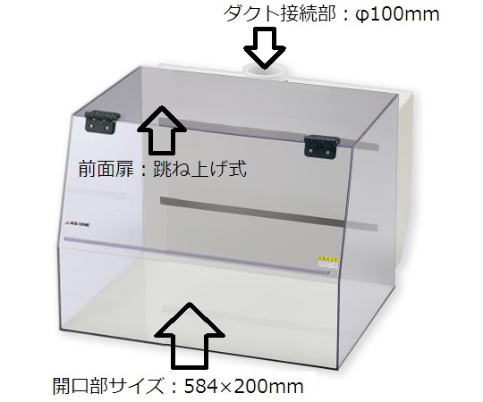 ●背面スリットを通し、底部に滞留するガスをスムーズに排気します。●本体は塩化ビニル樹脂で薬品の取り扱いも可能です。●一体構造で気密性に優れています。●開口部サイズ:584×200mm●ダクト接続部:φ100mm●前面扉:跳ね上げ式●材質:本体/PVC(塩化ビニル樹脂)、前面扉/PVC(透明塩化ビニル樹脂)、排気口/PP(ポリプロピレン)●重量:14.3kg●サイズ(mm):600×650×500●型番:TJW-600●※局所排気装置の申請が必要な場合のご使用には適しません。●※ご使用には別途ファンユニット(3-4064-11)が必要です。