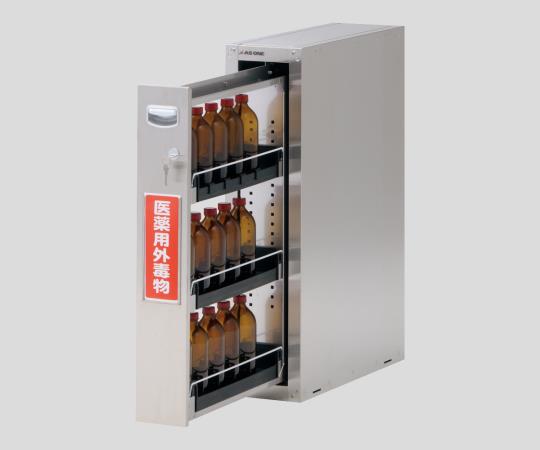 ●狭所への設置やセフティキャビネットSU-3E・5Eの追加として使用できます。●スリム薬品庫シリーズとセフティキャビネットSU-3E・5Eに連結できます。●棚板は任意にセットすることができます。●セフティキャビネットシリーズでサイズを統一していますので、連結金具を使えば連結が容易に行えます。●天井部にはφ100mmの排気ダクト(別売)を取り付けることができます。●排気を効率よく行うには別売のベースをご使用ください(幅が455・705mm以外の薬品庫本体には非対応です)。●材質:本体/ステンレス(SUS304)、トレー/PP(ポリプロピレン)、取手/ABS樹脂●サイズ(mm):192×600×800●試薬瓶収納本数:500mLのみ/15本、1Lのみ/8本●引出耐荷重:20kg●本体重量:約15kg●付属品:トレー×3個(PP)、タテ仕切棒×1本、ヨコ仕切板×4個、床固定金具・上下連結金具×各4個●※左右連結及び壁固定金具は(3-5016-12・13)のセフティキャビネット用オプションL2、F4をご購入ください。●※仕切板・仕切棒の追加は(3-5018-22・23)のセフティキャビネット用オプション(SU・SF・GF・GIF用)をご購入ください。