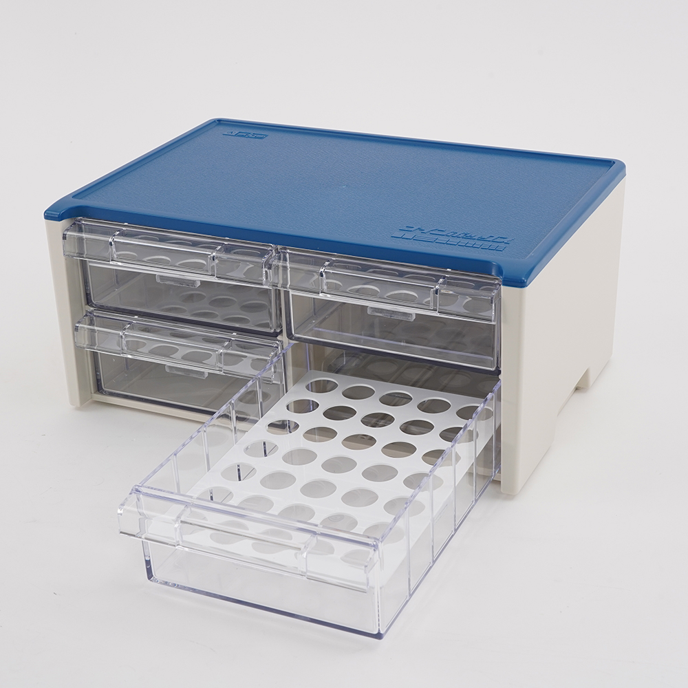 ●サンプル管やスクリュー管の整理・保管に便利です。●材質:ABS樹脂●サイズ:本体/344×240×155mm、引出し/152×220×65mm●型番:M-1型●容量(mL):3~10●穴径(φmm):22●収納数(本):140